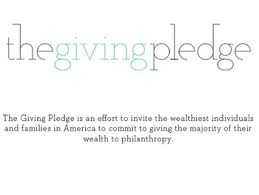 The Giving Pledge, started by Warren Buffet and Bill and Melinda Gates, is an effort to invite the wealthiest individuals and families in America to commit to giving the majority of their wealth to the philanthropic causes and charitable organizations of their choice either during their lifetime or after their death.